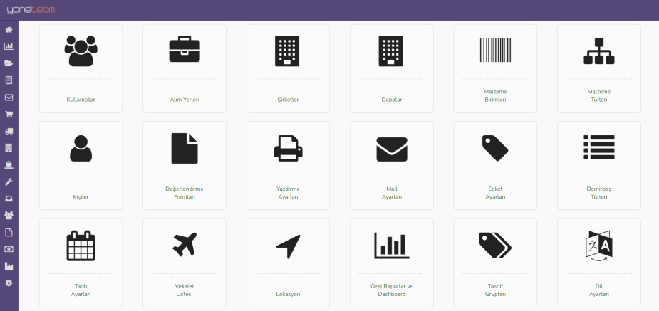 Farklı programlarla Yoneteam SatınAlma Yazılımını entegre edin, birimler arasında tam koordinasyonu sağlayın.
