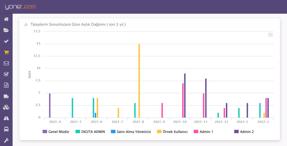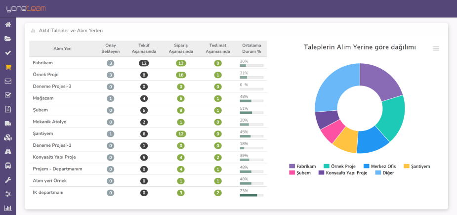 Şirket olarak raporlamaya çok önem veriyoruz. Dolayısıyla kullanacağımız sistemde raporlama özelliği bizler için ilk planda. YoneTeam, tüm beklentilerimize karşılık verdi. Raporlarımız eksiksiz ve hızlı olarak oluşuyor. Bu gelişmiş SatınAlma Yazılımını severek kullanıyoruz.