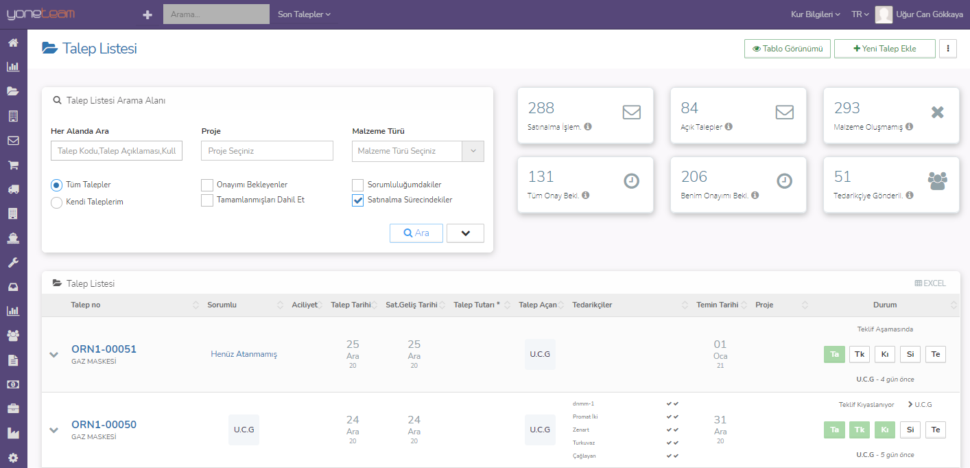 YoneTeam SatınAlma Yazılımıyla işletmelerinizde koordinasyon ve verimliliği yakalayın.