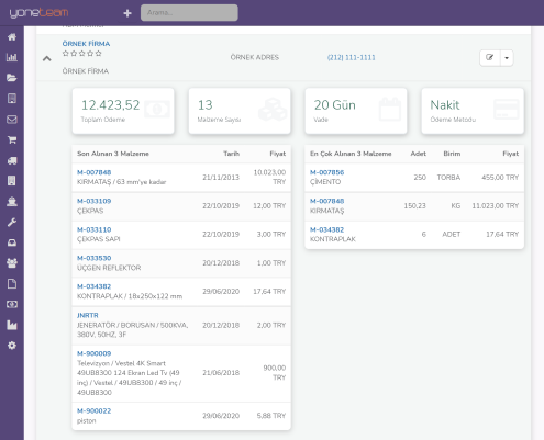 Geçmiş süreçlerinizin özetini görebileceğiniz ekranlarla, tedarikçileriniz ile ilgili yapılan tüm işlemlere anında ulaşın.